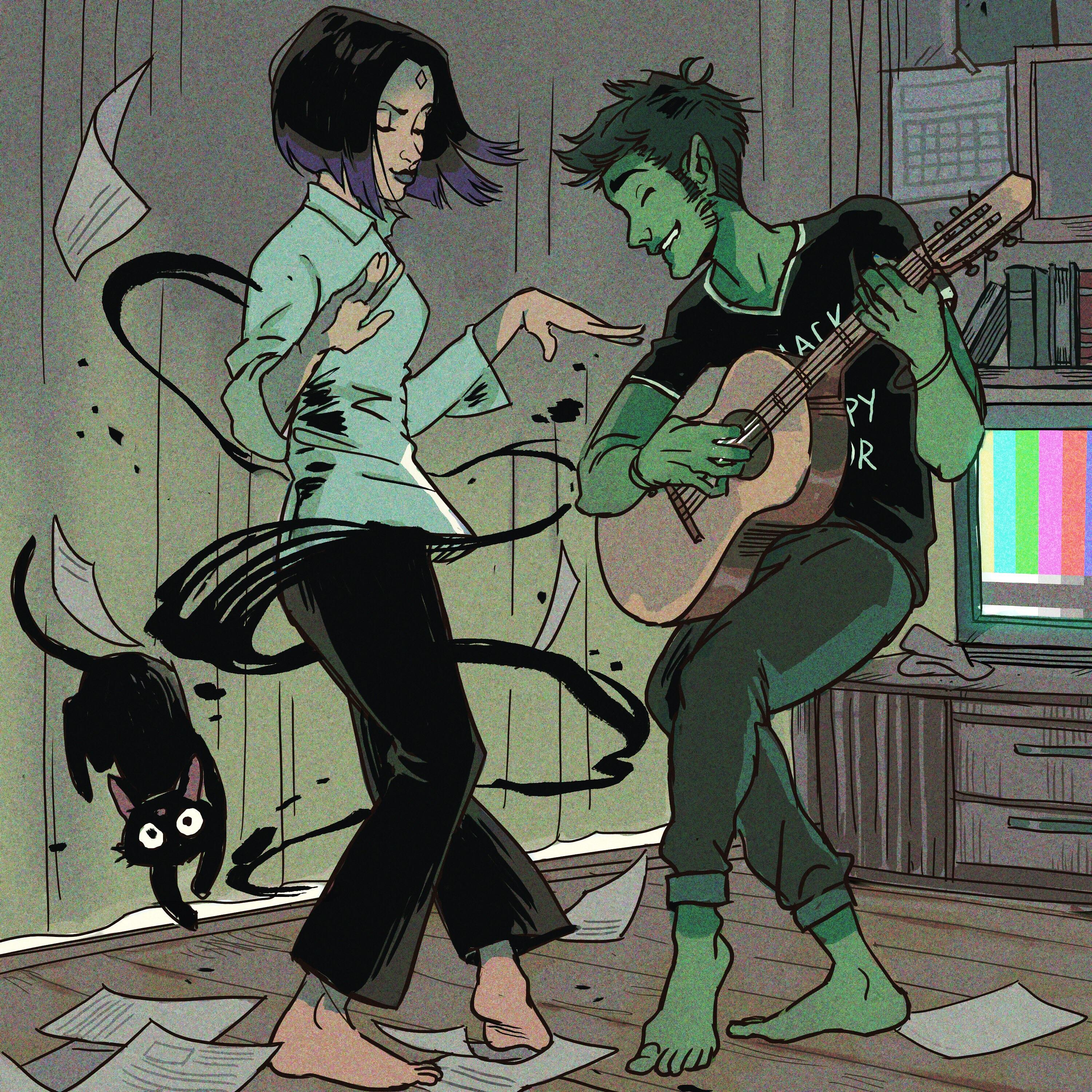 Raven and Beast Boy busting a move from www.reddit.com