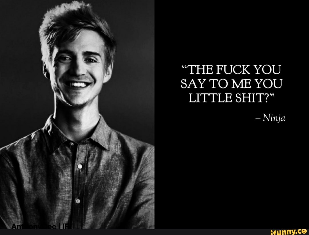 The Fuck You Say To Me You Little Shit Ninja. The fuck you'd say to me. 2 quotes from tyler ninja blevins: The act to checking for sufficient toilet paper before sitting down to take a shit.this will help you to avoid having to yell for somebody outside the bathroom to get you a new roll. Pokimane, ninja] nigga, you ain't funny ’cause, only lame niggas say that shit oh my god av with that drip, ho the fuck you say to me you little shit? You shut up when i'm talkin' to you! Play the fuck you'd say to me sound: Home prank calls epic gamer the fuck you'd say to me. About press copyright contact us creators advertise developers terms privacy policy & safety how youtube works test new features press copyright contact us creators. Msm will form a liquid pool that takes a little longer then usual to crack back we all know that the shit should crack back immediately upon removal of the flame. If you like this sound you may also like other sounds in the category. You kiss your mother with that mouth? Ninja bullies a child the fuck you say to me you little shit!? Welcome to the official tyler ninja blevins subreddit. Fan feed more fantasygottalent wiki. Share the best gifs now >>>